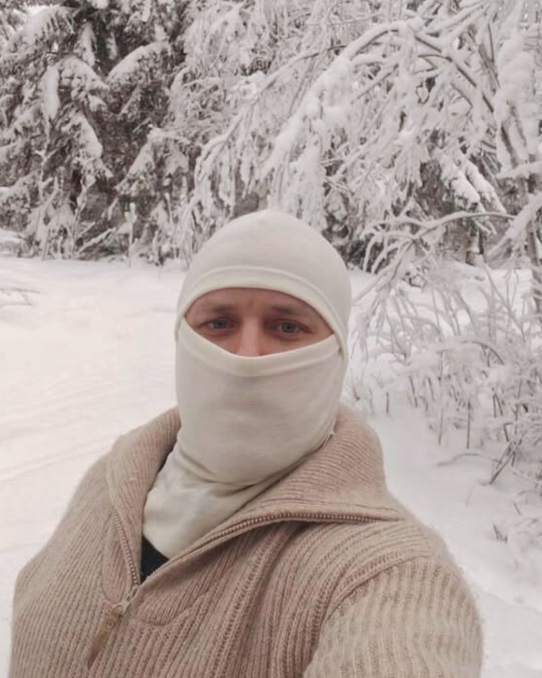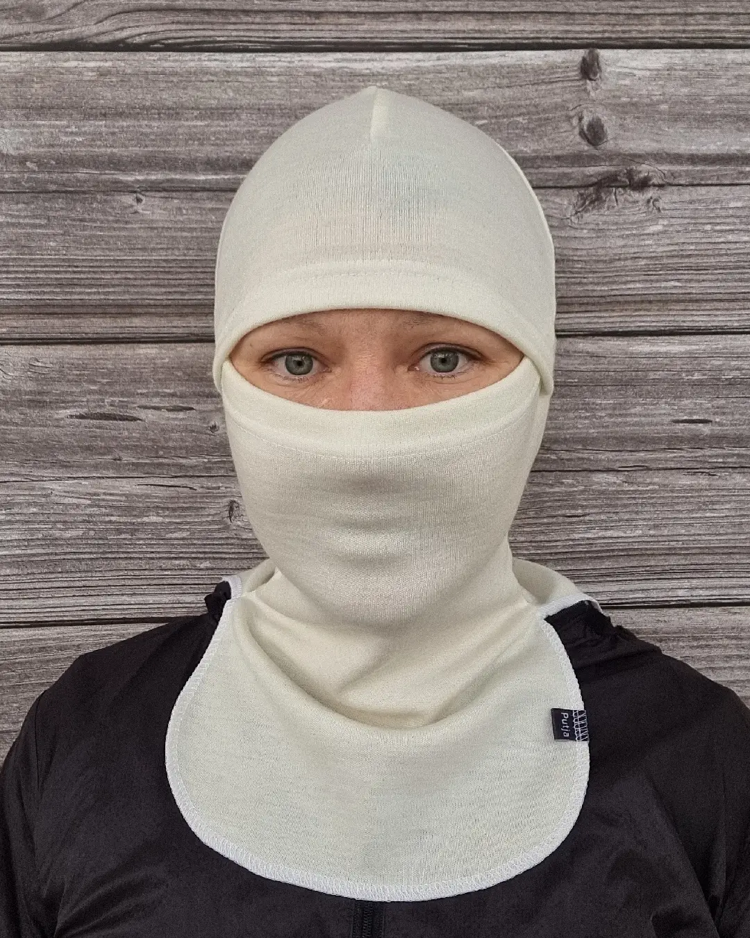 1 arvio tuotteelle Aikuisten luonnonvalkoinen merino kypärämyssy kasvosuojalla