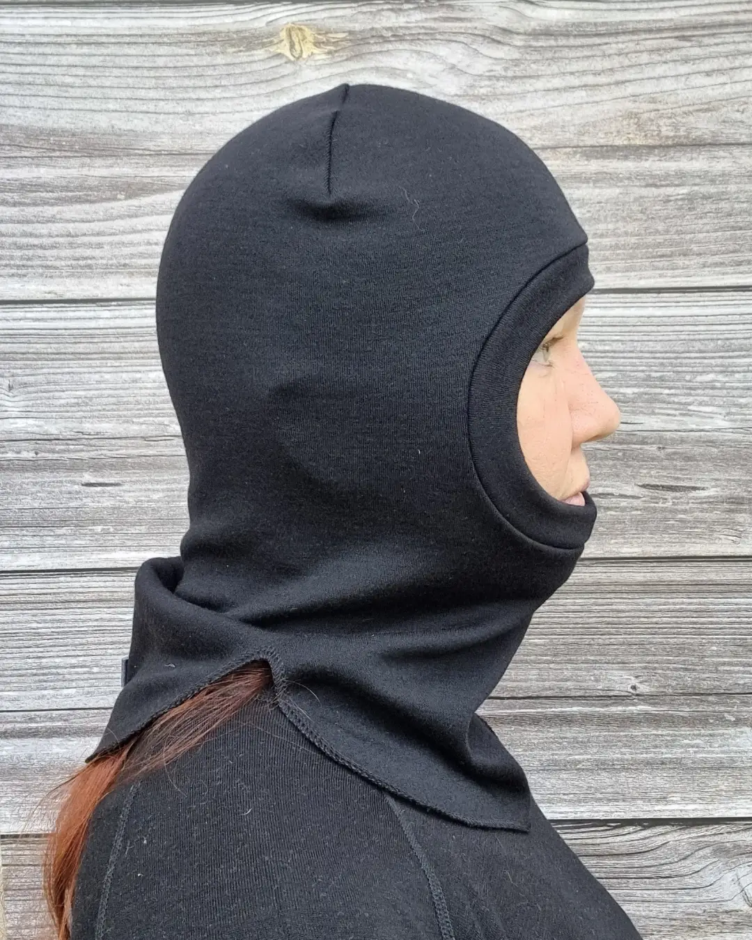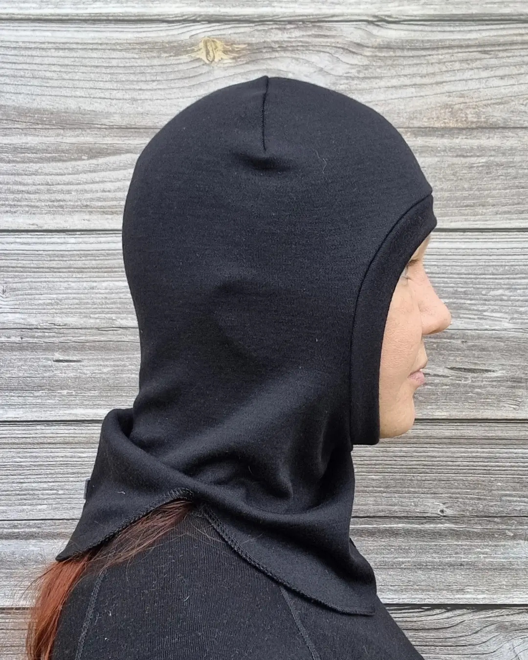 Aikuisten musta merinovilla kypärämyssy on klassikko. Musta on käytännöllinen väri, joka pysyy pitkään siistin näköisenä.