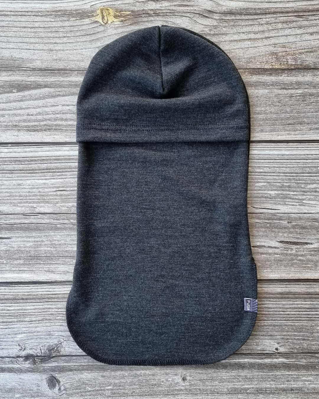 Tummanharmaa kypärähuppu on huoleton käyttää. Tummassa värissä ei näy lika, joten tämä merinovilla kypärähuppu pysyy siistin näköisenä kovassakin käytössä. Meleeratun sävyn vuoksi värissä ei erotu pienet karvat ja pöly.