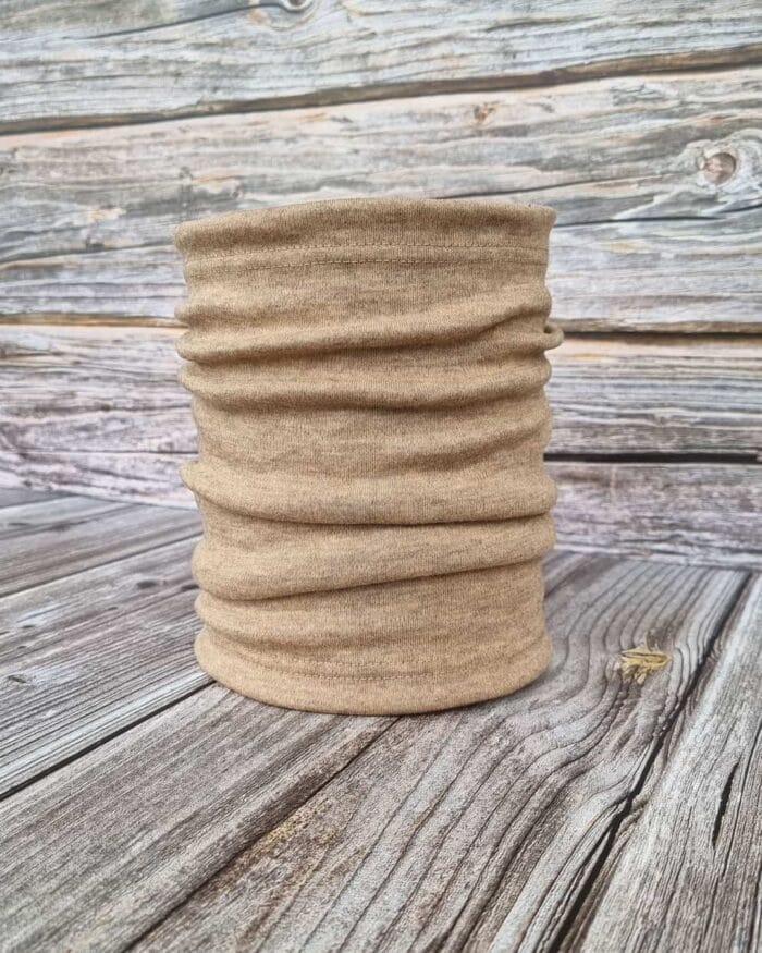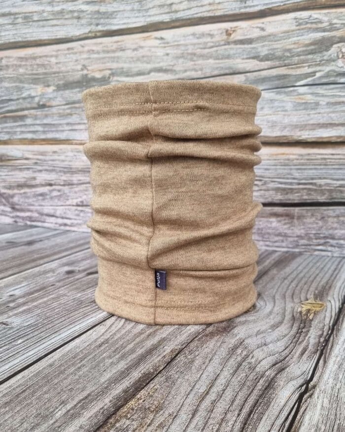Lasten kinuskin ruskea tuubihuivi hurmaa luonnollisella sävyllään. Lämpimän ruskea tuubihuivi on helppo yhdistää muihin maanläheisiin väreihin. Merinovilla tuubihuivi lämmittää hiostamatta.