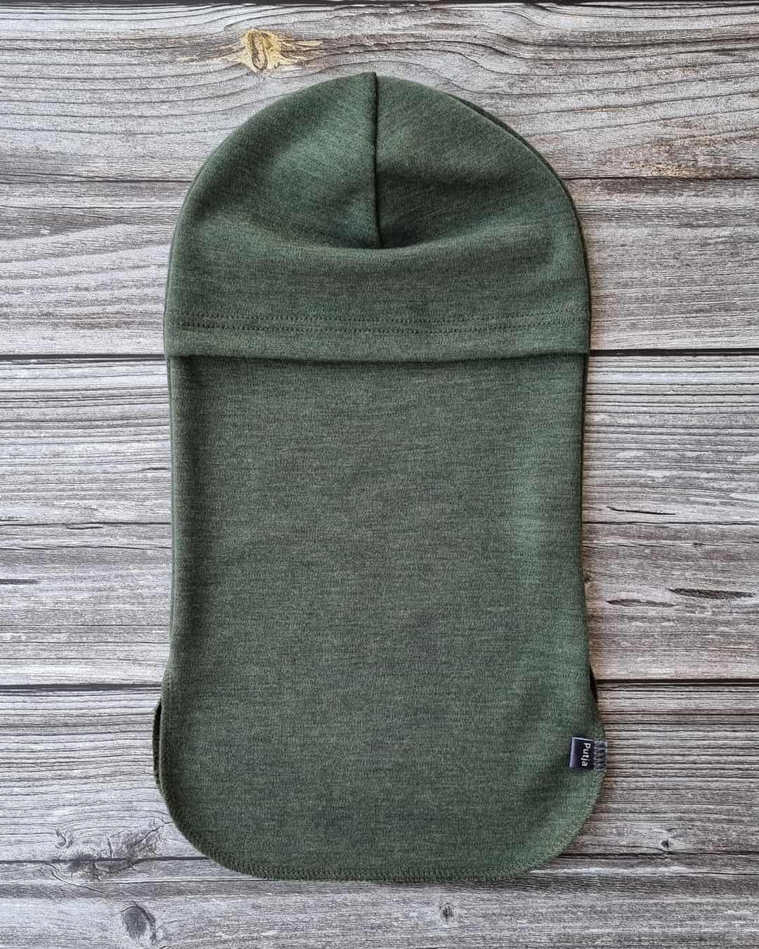 1 arvio tuotteelle Lasten metsänvihreä merino kypärämyssy kasvosuojalla